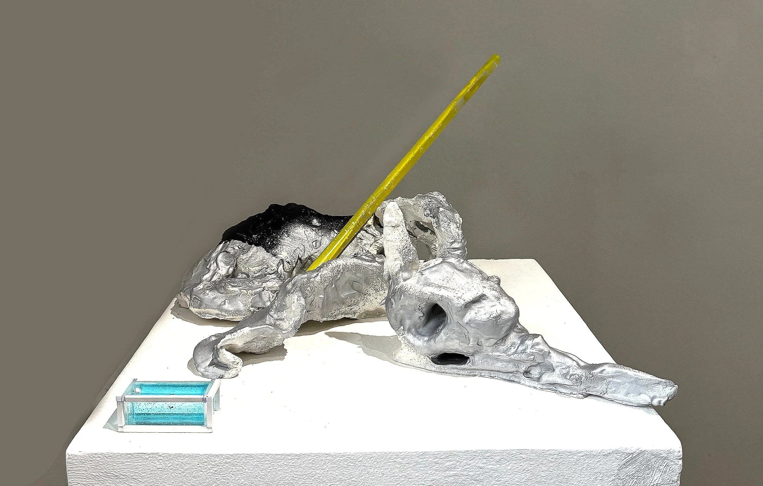 clay, acrylic pole, spray